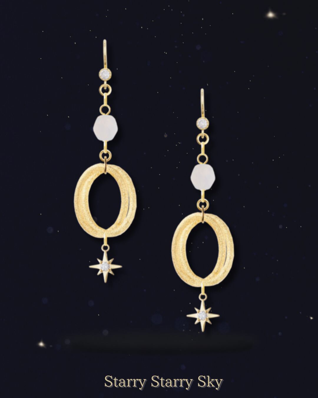 淡く乳白色に輝くオパールと、ゴールドパーツ、星モチーフを組み合わせ、