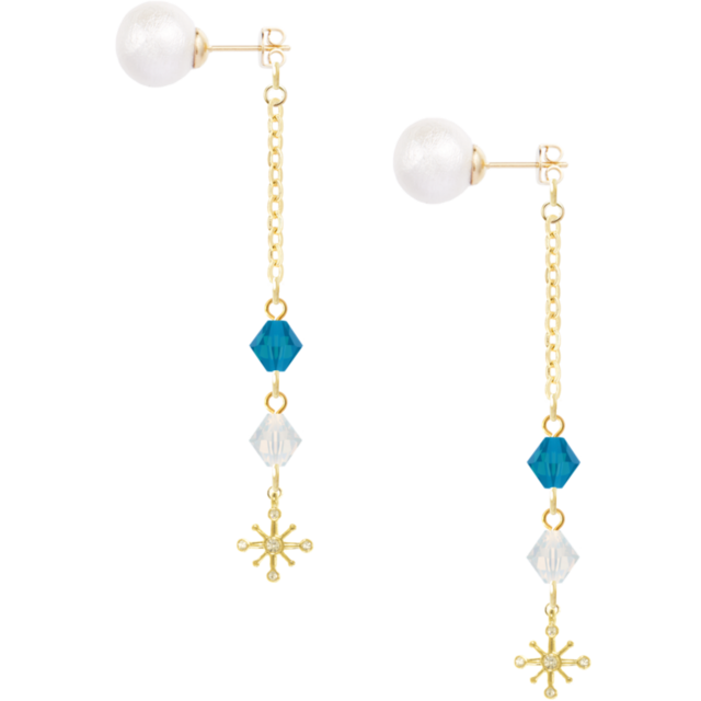StarryStarrysky|雪の結晶 チェコビーズ&チェーン ピアス